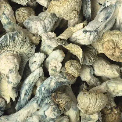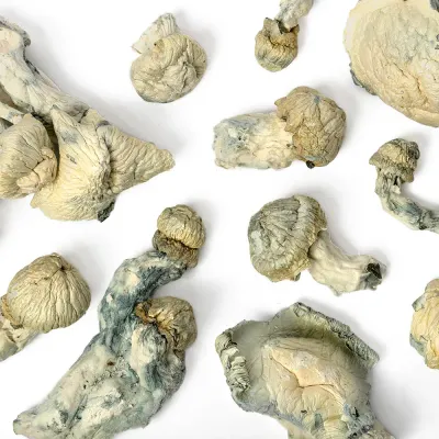 Magicfly’s APE x TAT Raw Mushrooms are carefully dried and handled to preserve structure and visual character. Expect pale coloration, visible blue bruising, and natural variation in size and shape.